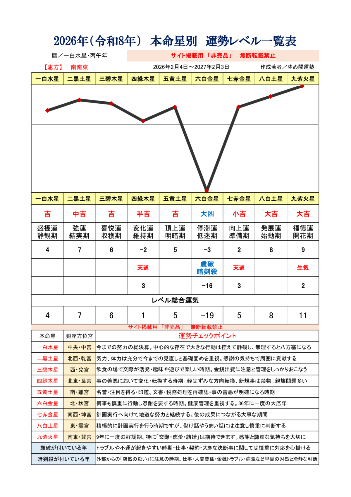 一白水星から九紫火星までの運勢開運バイオリズムグラフをご覧になれますので、お手数とご不便をおかけしますがどうぞよろしくお願いいたします。