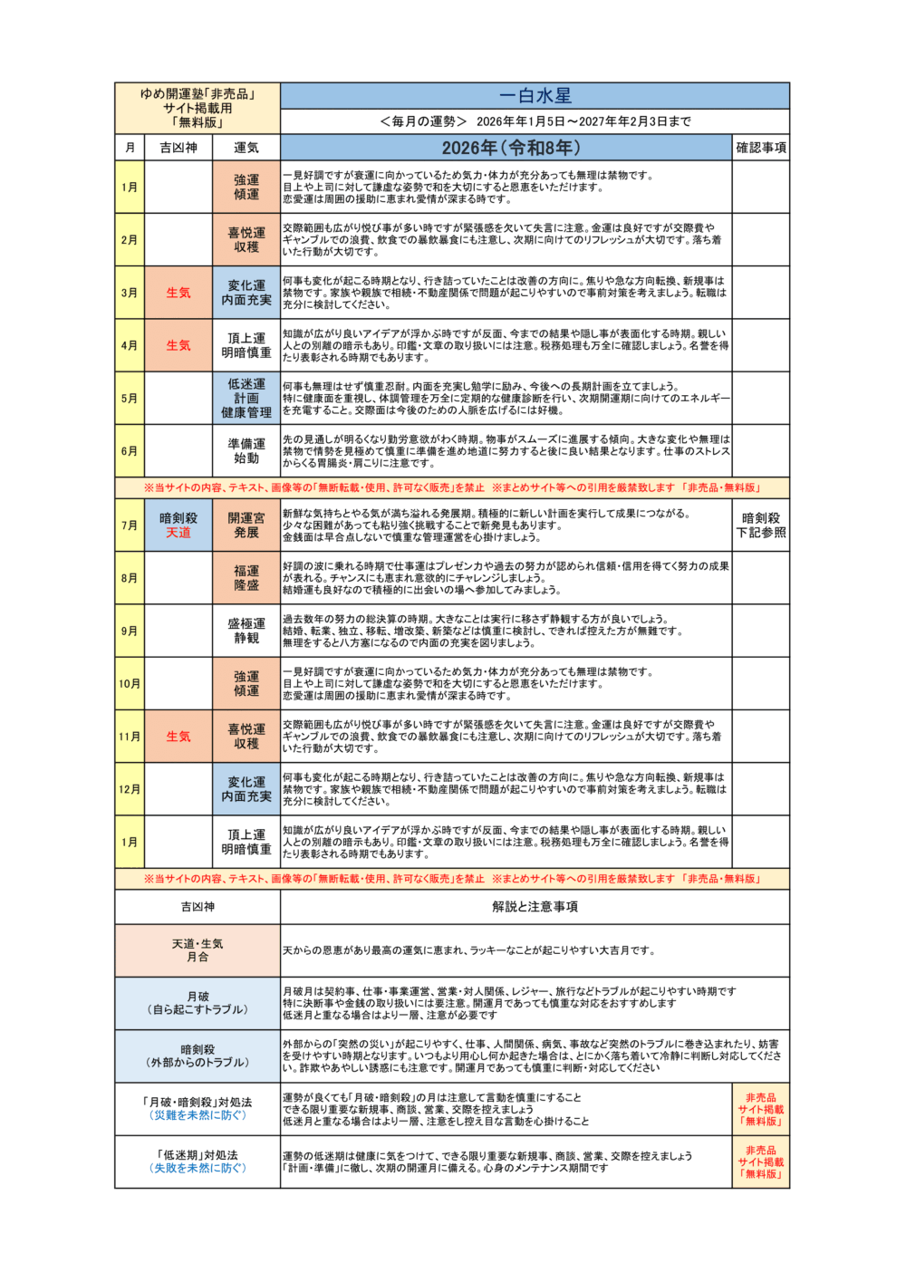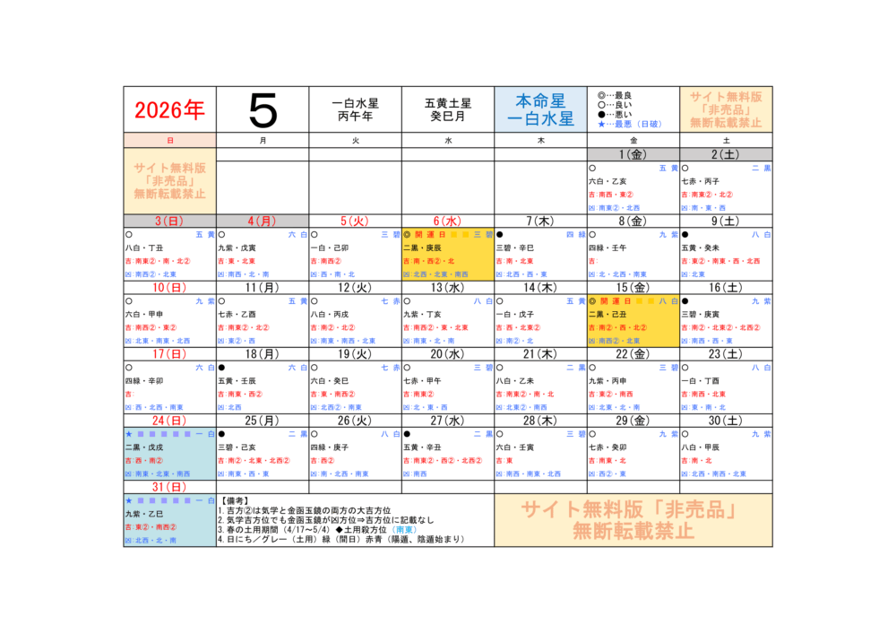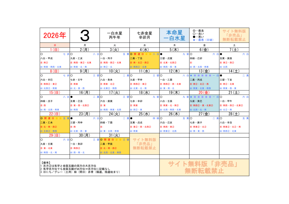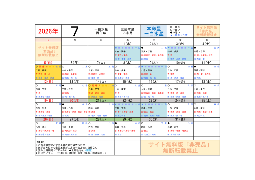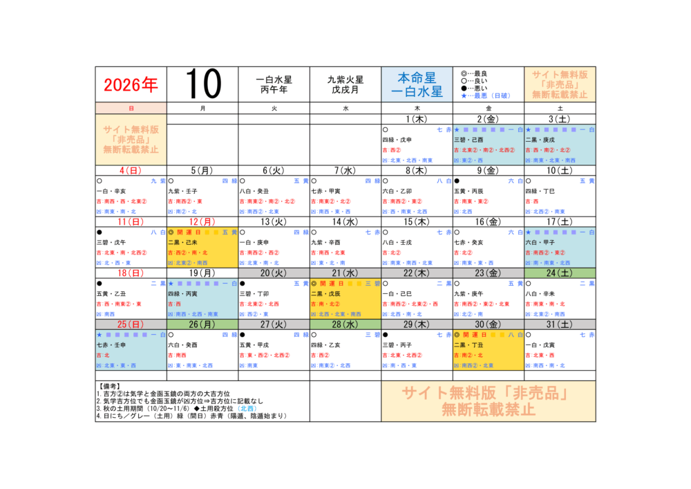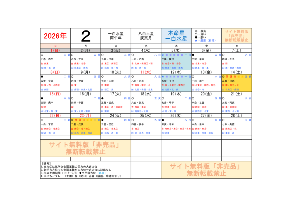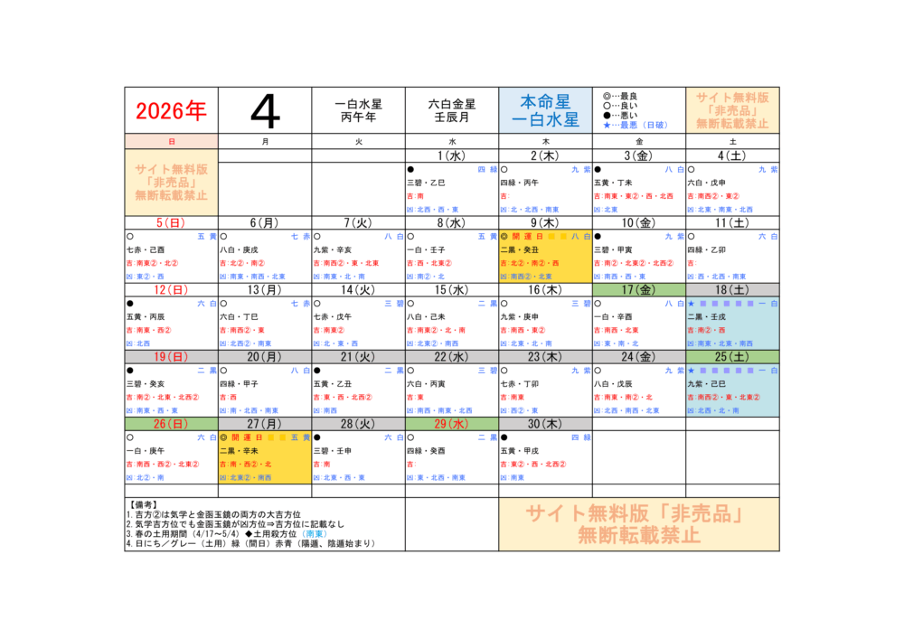 一白水星の生まれの方、カレンダーの運気と吉方位を日々の移動や行動に活かすことで幸運確率がアップします。毎日の「良い気」の積み重ねが、心身を安定させ幸運体質へとつながります。