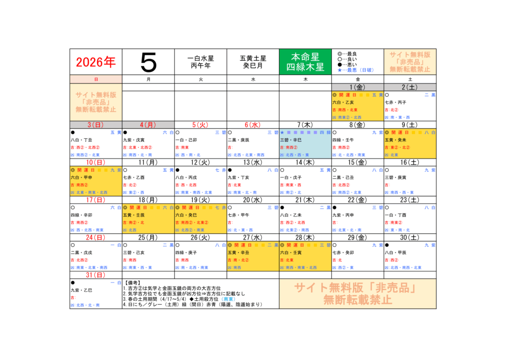 2026年5月/運気方位カレンダー